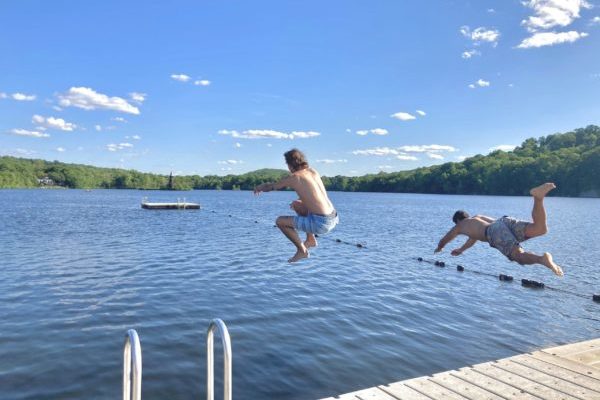 Our beautiful 108 acre recreational Lake Kinnelon features a large beach, swim lanes, lifeguard shack, snack stand, BBQ grills, volleyball nets, playground, horseshoe pits, basketball and bocce ball courts. There are electric boat docks as well as storage racks for sunfish sail boats, kayaks, canoes, and stand-up paddle boards. Kids (and adults) love standing on the docks fishing the stocked lake for bass, perch, catfish, and sunfish.
